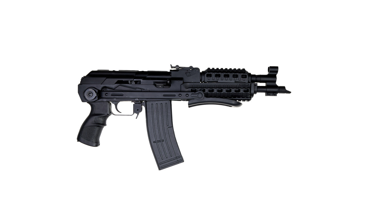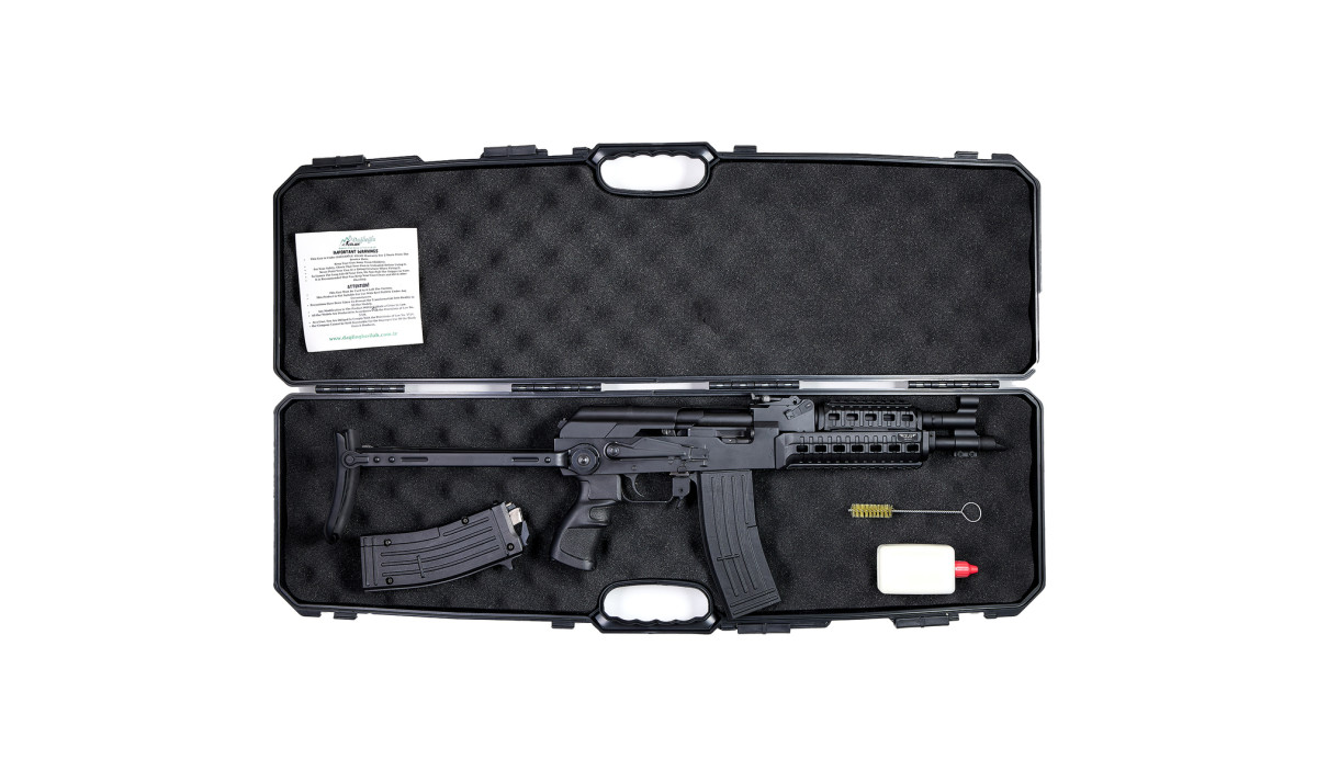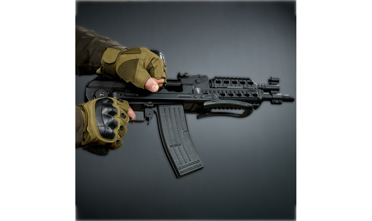 - Корпус: алюмінієвий сплав - легкий і міцний.Холостий калаш із планкою вівера і пікатіні