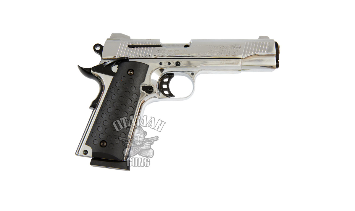 Стартовый пистолет KUZEY 911 Chrome Engraved с дополнительным магазином