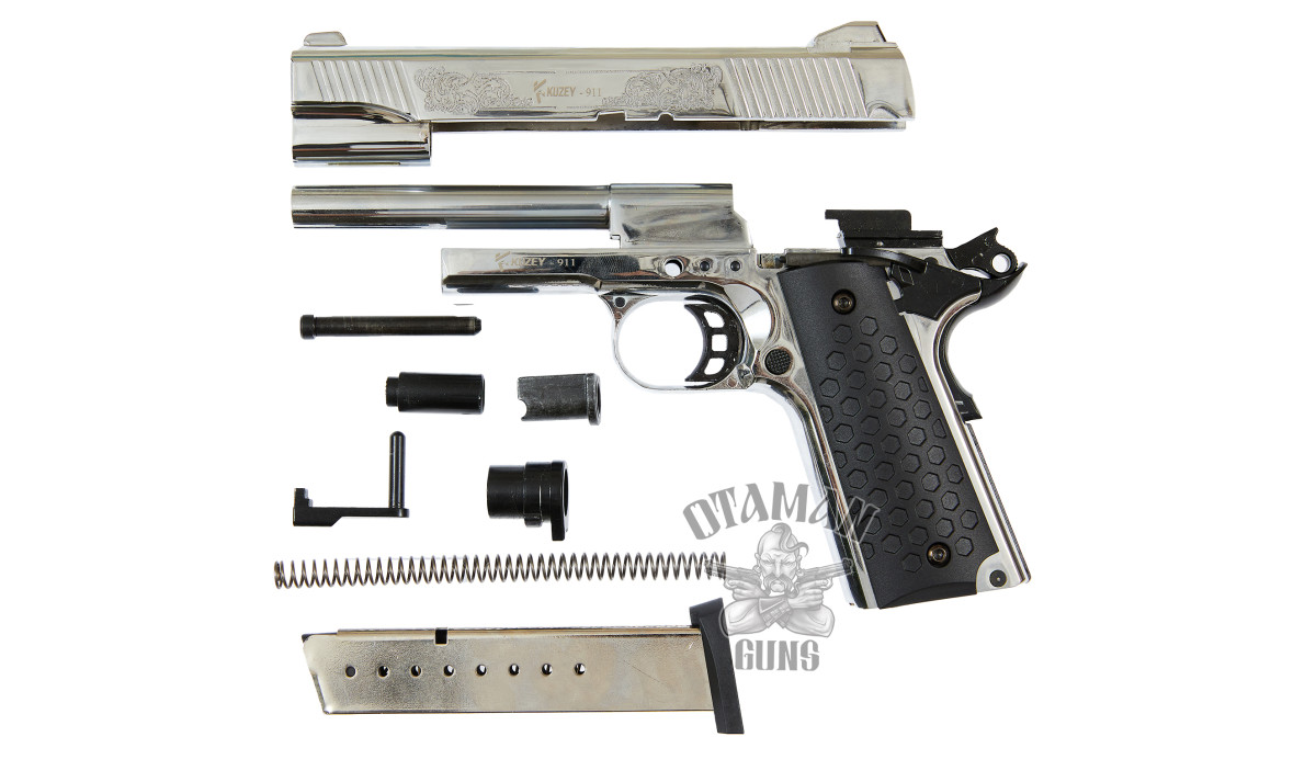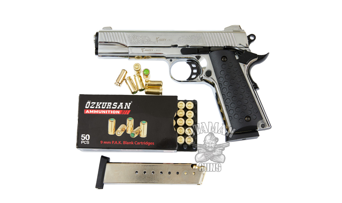 Kuzey 911 Chrome Engraved похож на легендарный Colt M1911, но досконально является прототипом Smith & Wesson SW1911. Но скопирован не только внешний вид, а и ударно спусковой механизм. В стартовом пистолете реализованы все особенности боевых пистолетов на базе 1911.