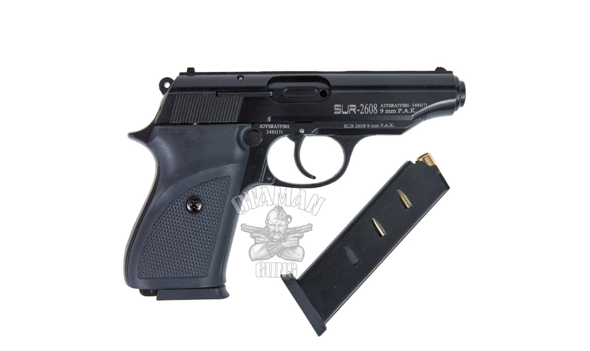 SUR 2608 black относится к сигнальному шумовому оружию. Разрешен к свободной продаже, не требует лицензии или разрешения на ношение. Воспроизводит внешний вид, вес, принцип работы настоящего оружия, включая работу затвора, ударника, вылет гильзы, вспышку, громкий звук и отдачу.