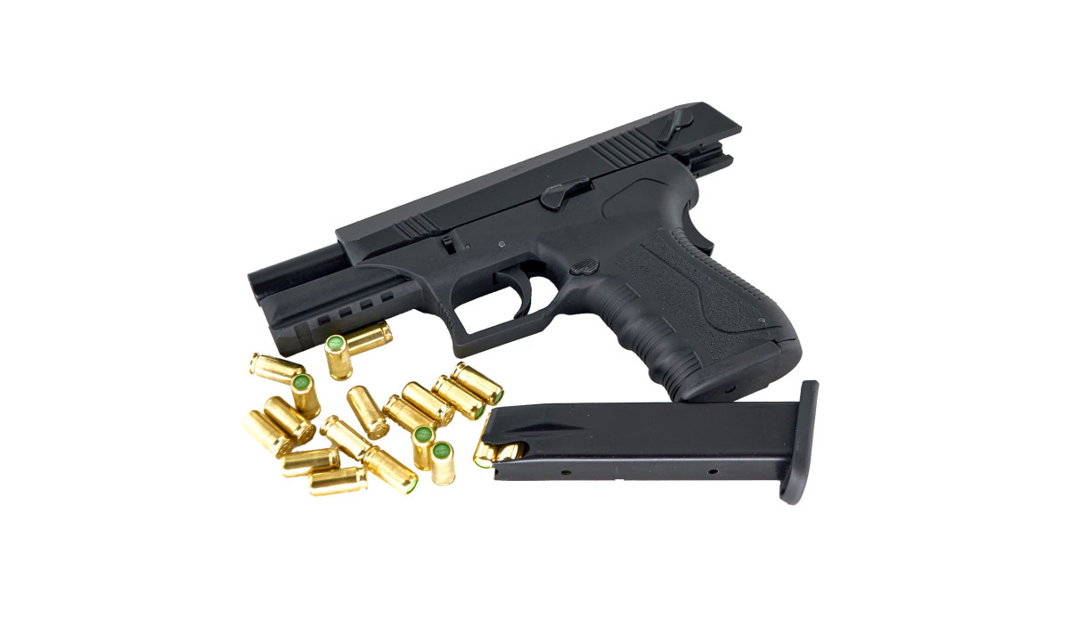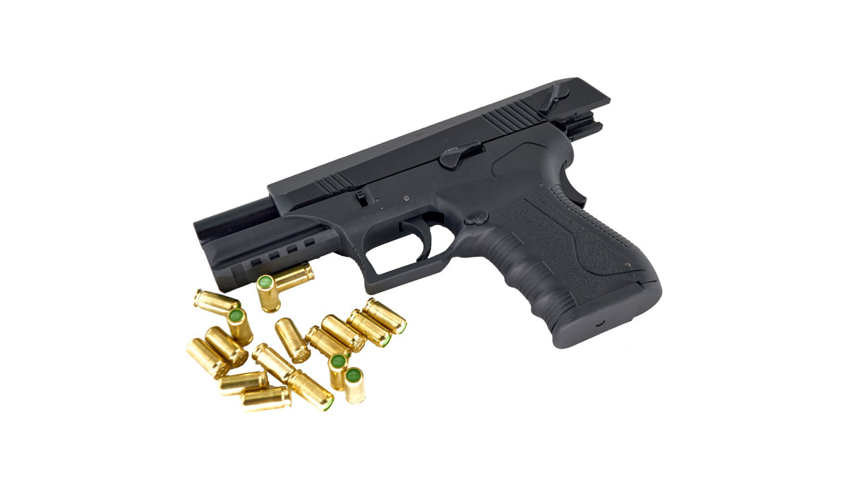При израсходовании всех патронов, шумовой пистолет Сур стрм станет на затворную задержку. Для снятия с затворной задержки нужно нажать на флажок расположенный с левой стороны.